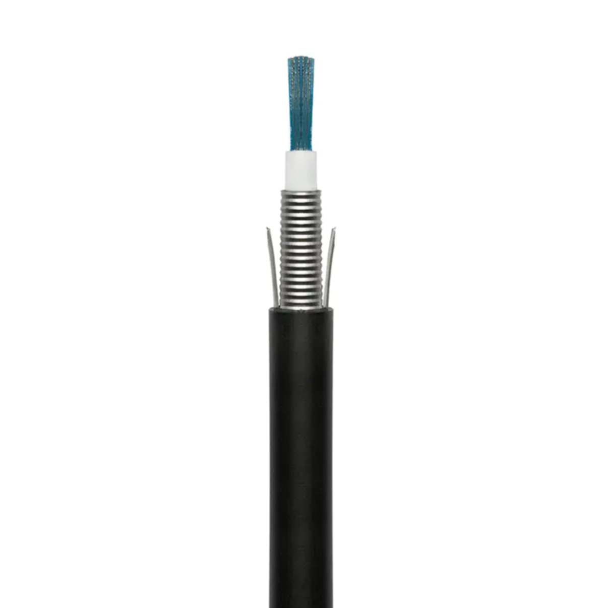 Su geçirmez, UV ışınlarına dayanıklı ve kemirgenlere dayanıklı özellikler gerektirir. Genellikle bir kullanır gevşek borulu çok telli yapı su engelleyici jel ile doldurulmuştur.